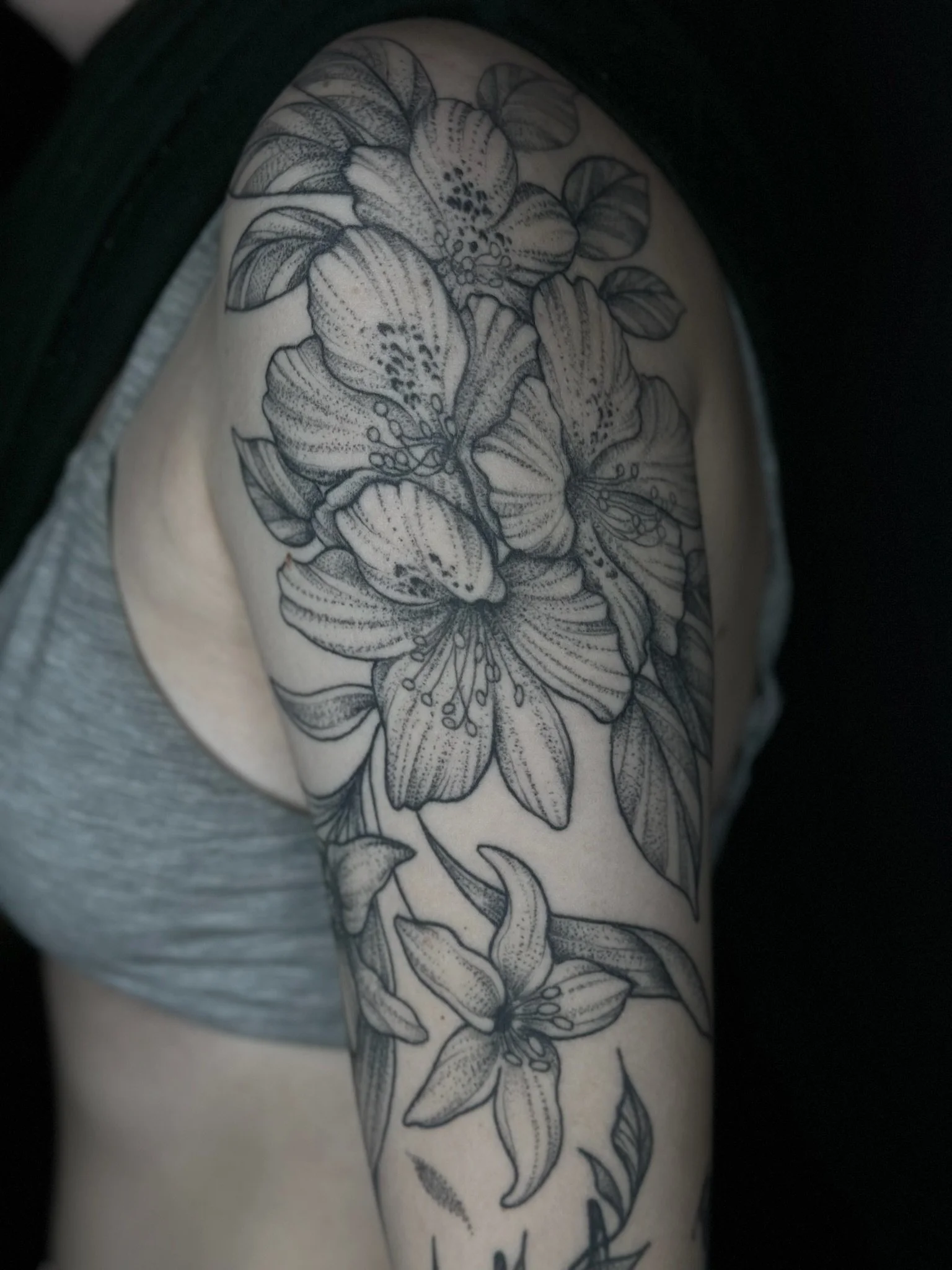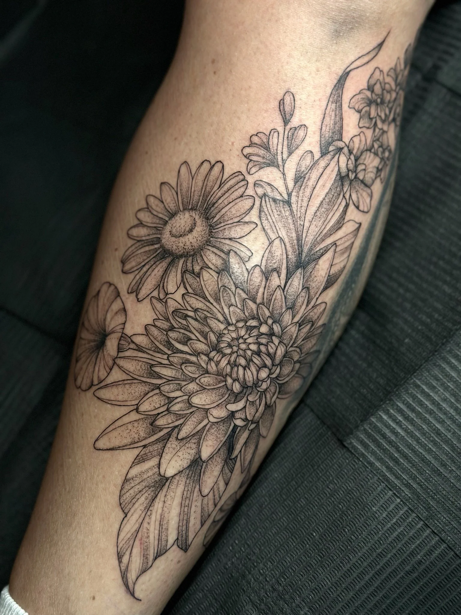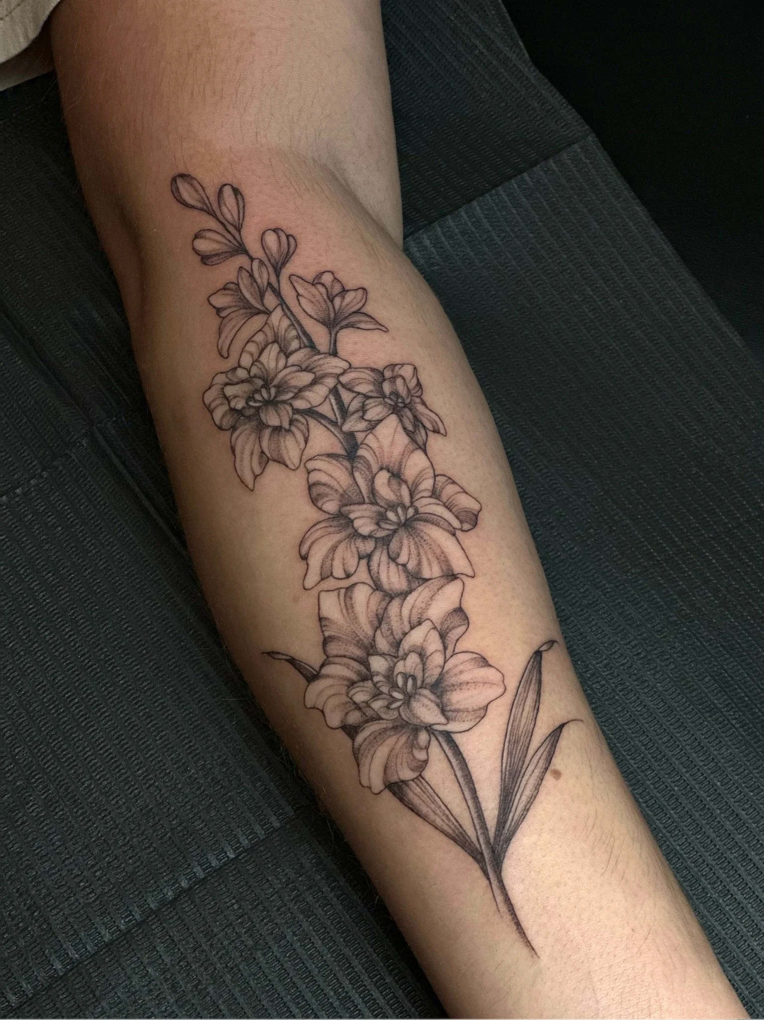 Kirsten specializes in black and grey work and is well known for her dainty, fine line florals. In the past year of her tattooing career, she has found great joy in focusing more on pet portrait work. Being a dog mom of two, she absolutely loves being able to provide her clients with beautiful portraits of their animals that they can carry with them forever. Kirsten also enjoys tattooing ornamental, script work, realism, traditional and more.