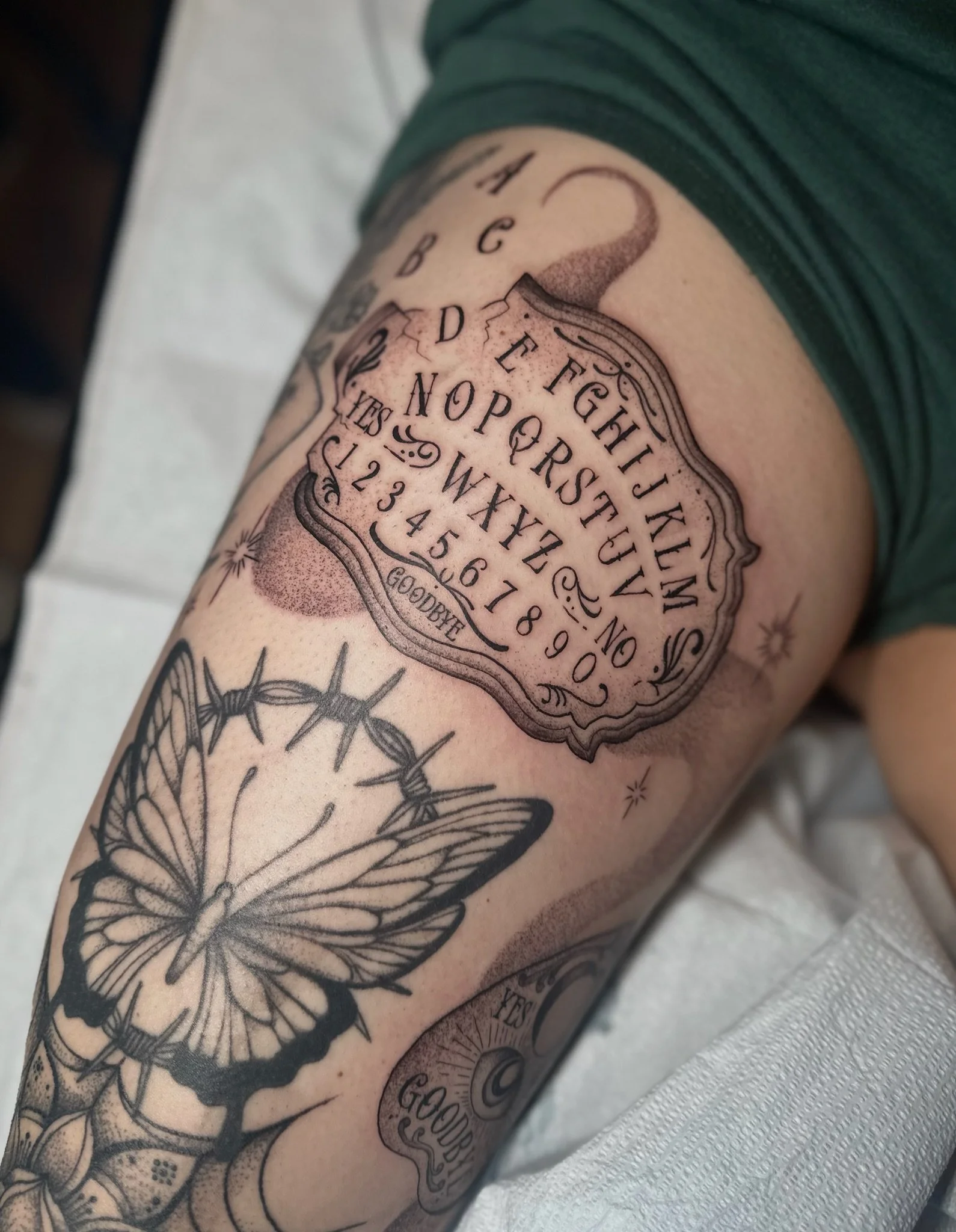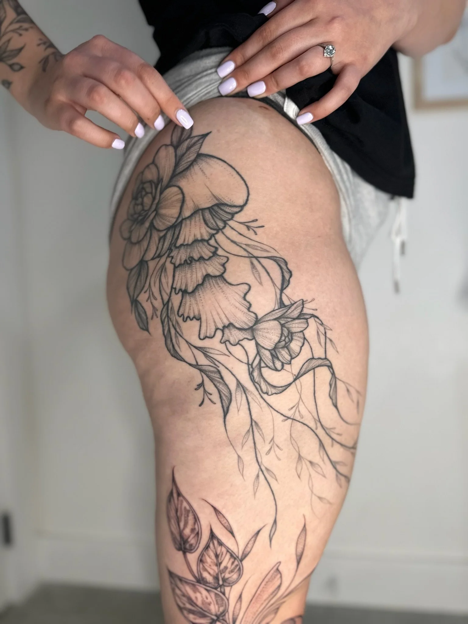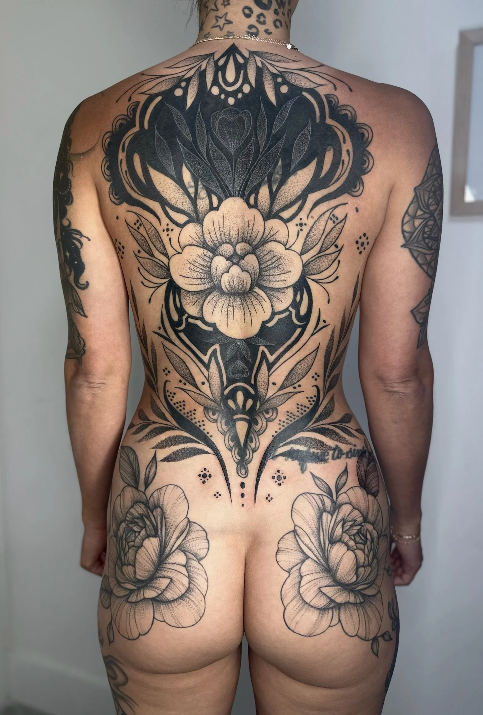Kirsten is available for custom requests but also has a lot of pre drawn designs to choose from. Her books are always open and she’s super quick to reply to all requests. You can find her on Instagram @amethyst_ink_ or email vineandvalour@gmail.com or submit our tattoo request form .